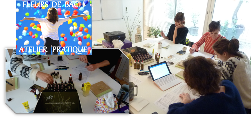 Atelier découverte fleurs de Bach Previous Next Publié 7 août 2018 à 850 × 404 dans Tarifs Atelier pratique fleurs de Bach, participantes concentrées et en action une groupe de personnes étudie et compose un flacon